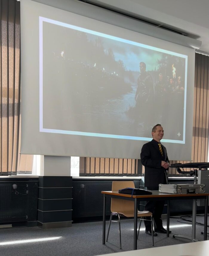 Dabei habe ich in meinem Vortrag „Alea iacta est – Caesars Spiel um die Macht und die Folgen für Rom und die antike Welt“ aufgezeigt, wie die Beschäftigung mit dem Ausbruch des römischen Bürgerkrieges zwischen Caesar und Pompeius im Januar 49 v. Chr., mit dessen Ursachen und den Beweggründen der Akteure, aber auch mit den Folgen für die späte römische Republik als Beispiel für das Taktieren politischer „Parteien“ und Interessengruppen den Blick für solche Mechanismen auch in unserer Zeit schärfen kann. Darüber hinaus habe ich konkrete Impulse für die Behandlung dieses Themas nicht nur im Latein-, sondern auch im Griechisch- und Geschichtsunterricht gegeben. Der volle Hörsaal ebenso wie die angeregte Diskussion im Anschluss haben deutlich gezeigt, dass die Beschäftigung mit Caesar auch heute noch interessant und lohnenswert ist.